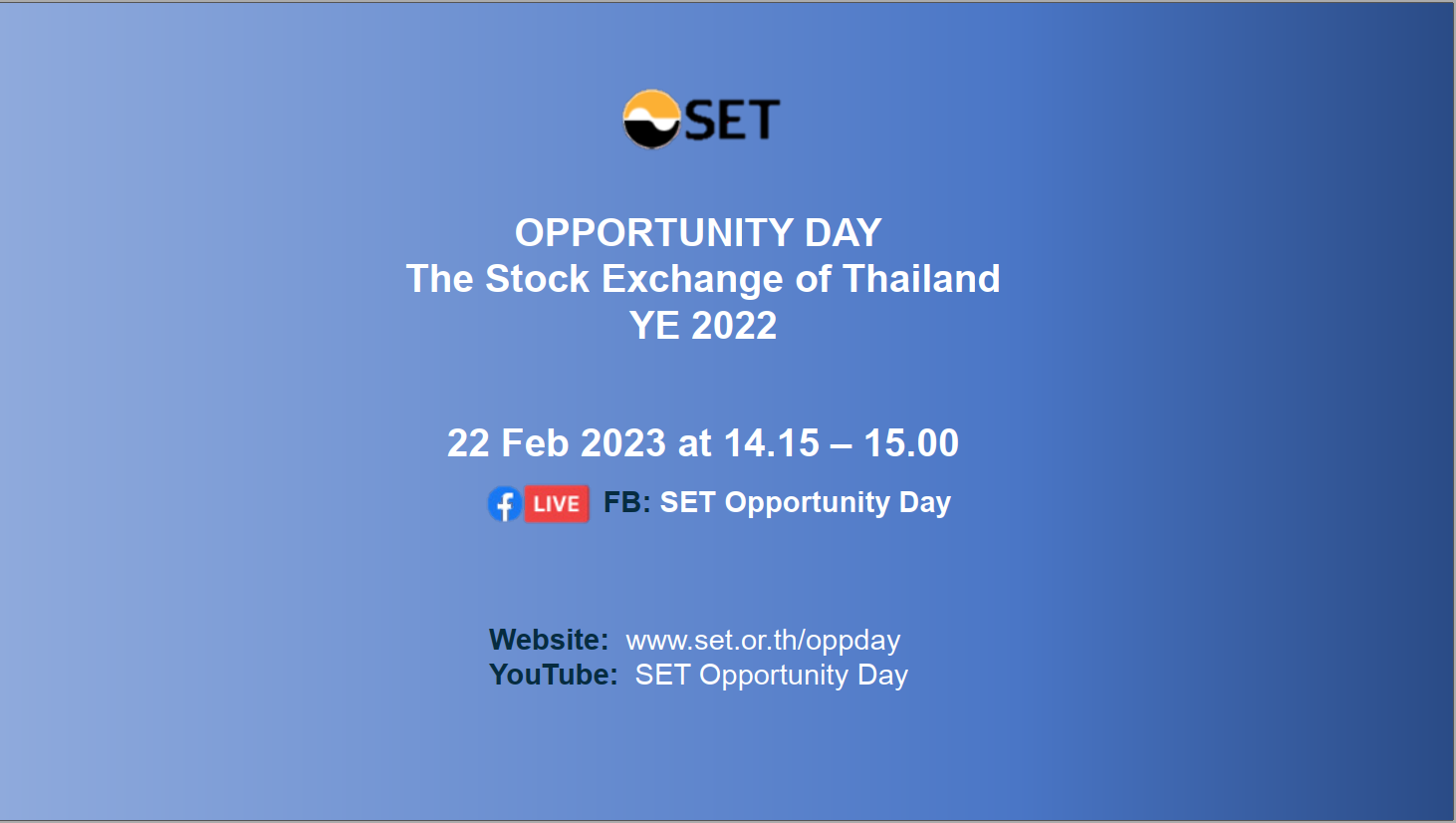 Opportunity Day The Stock Exchange of Thailand YE 2022