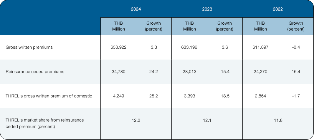 Thaire Life Assurance's business is a reinsurance business from a Life insurance company (ceding company), which has led to some of the company's growth factors being determined by policy and stakeholders, which consists of 2 main parts: